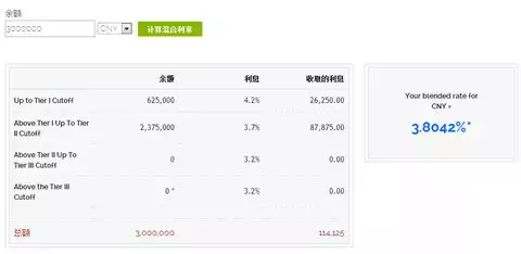 答:融資利息查看地址:https:// www.ibkr.com.cn/cn/index.php?f=interest… 下面以融資餘量300萬人民幣左右為例,2015年6月12日的利率情況,利率每天都在變化,美日歐變化較小,供參考。總體來說,負債越多利率越低,人民幣長期在年化3-6%,港幣為年化2%多一點,美元日元歐元為年化1%多一點。 這是50 萬美元的融資利率,年化1.23%